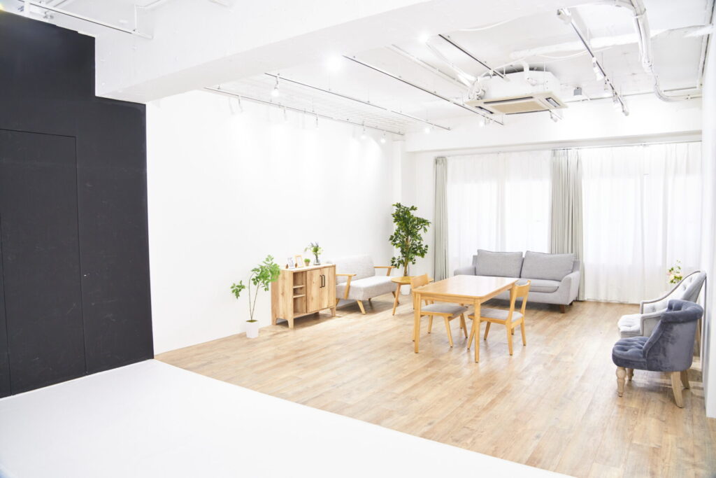 身支度を済ませたら撮影シーンを決めます!チェリッシュスタジオの家具は一人でも動かしやすいようにしてあるので気軽に家具を動かすことが出来て広々と踊れます!