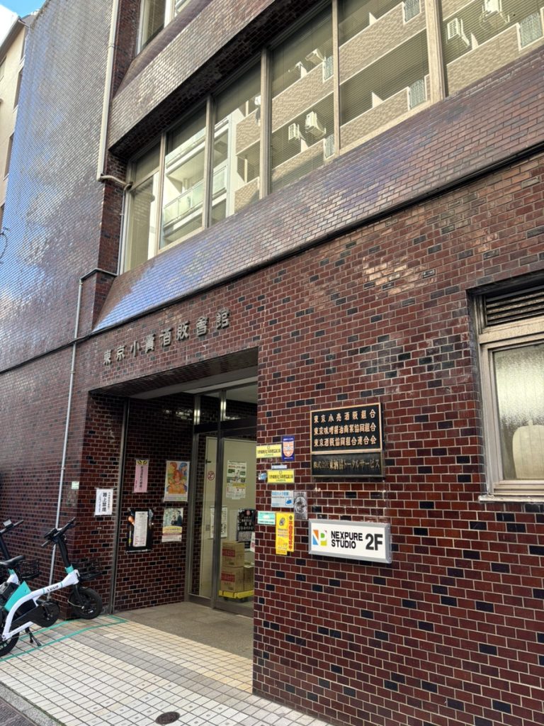 もう少し歩くとスタジオのある「東京小売酒販会館」の看板が見えたら到着!!!