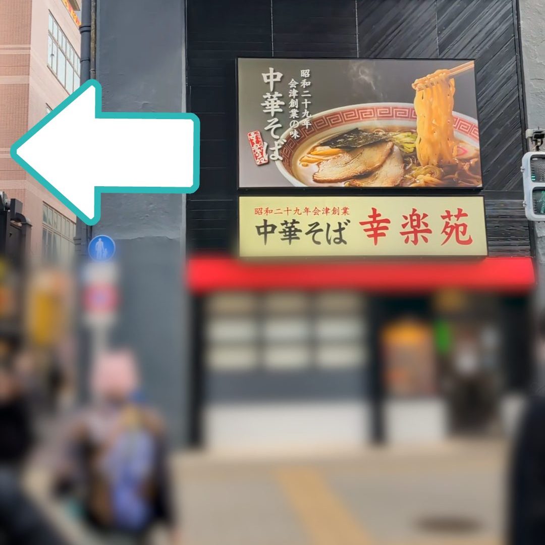横断歩道を渡ったら幸楽苑さんの前を左側方向に曲がります
